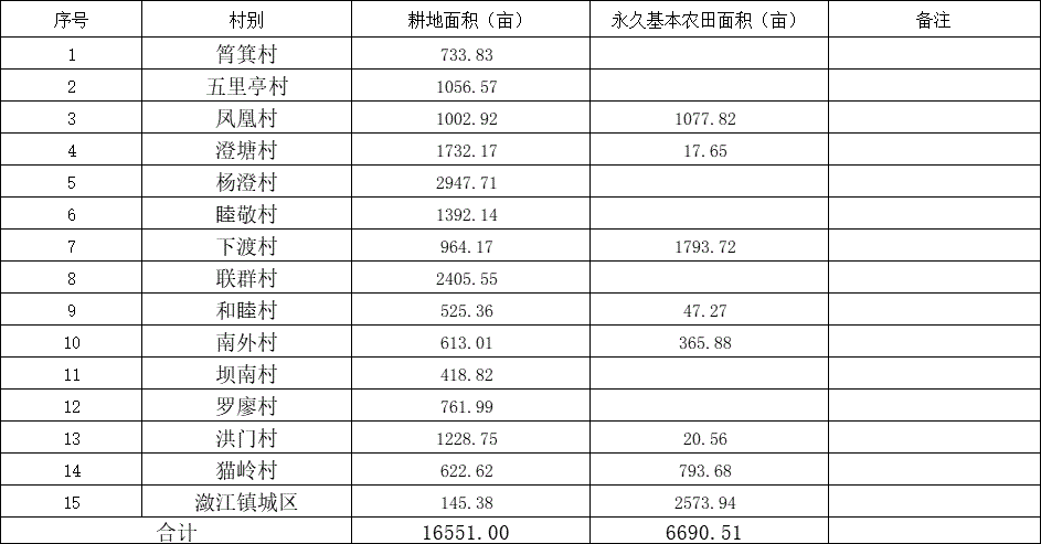 【土地整治】瀲江鎮各村2023年全年耕地面積明細表