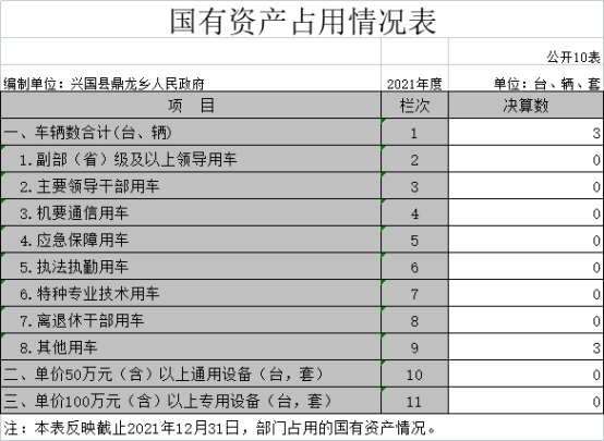 截止2021年12月31日,本部門(單位)國有資產占用情況見公開10表《國有資產占用情況表》。其中車輛中的其他用車主要是公車及消防用車。