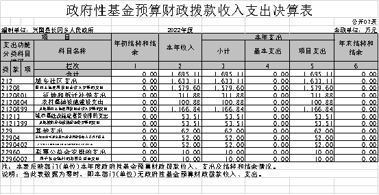 七、政府性基金預算財政撥款收入支出決算表