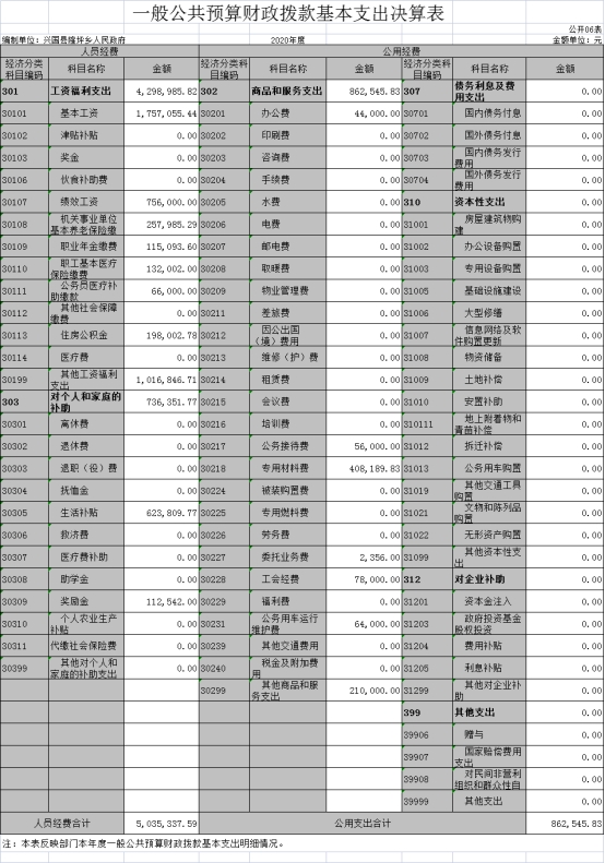 6.基本支出:指為保障機構正常運轉、完成日常工作任務而發生的人員經費和公用經費。其中:人員經費指政府收支分類經濟科目中的“工資福利支出”和“對個人和家庭的補助”;公用經費指政府收支分類經濟科目中除“工資福利支出”和“對個人和家庭的補助”外的其他支出。