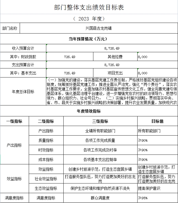 興國縣古龍崗鎮人民政府2023年部門預算草案