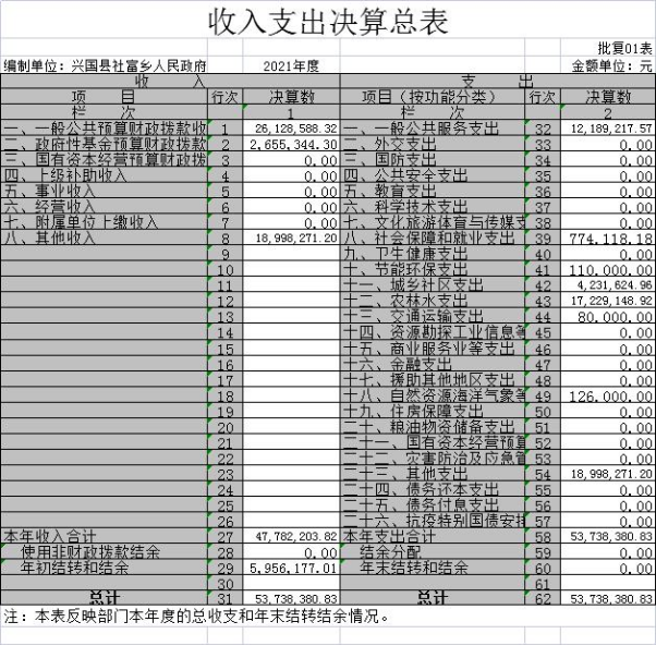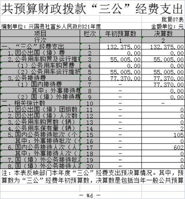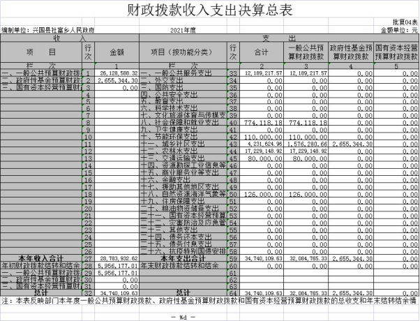 納入本套部門決算匯編范圍的單位共1個,包括:興國縣社富鄉人民政府(需按單位預算級次分別列出)。