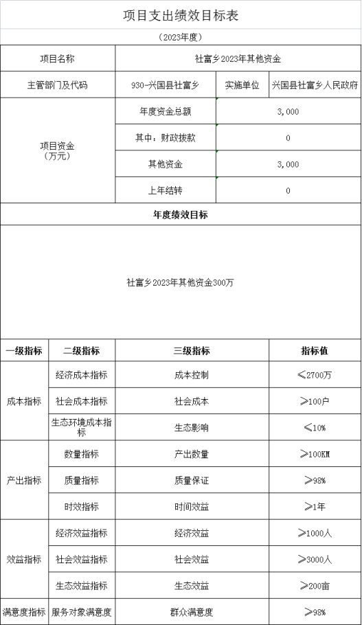 2023年實行績效目標管理的項目1個,涉及資金3000萬元。