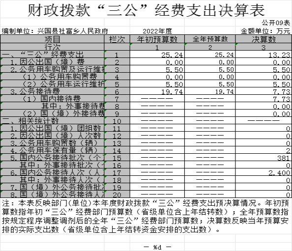 納入本套單位決算匯編范圍的單位共1個,包括:興國縣社富鄉(xiāng)人民政府。