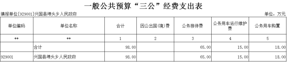 2022年興國縣埠頭鄉人民政府部門或單位“三公”經費一般公共預算安排98萬元。其中: