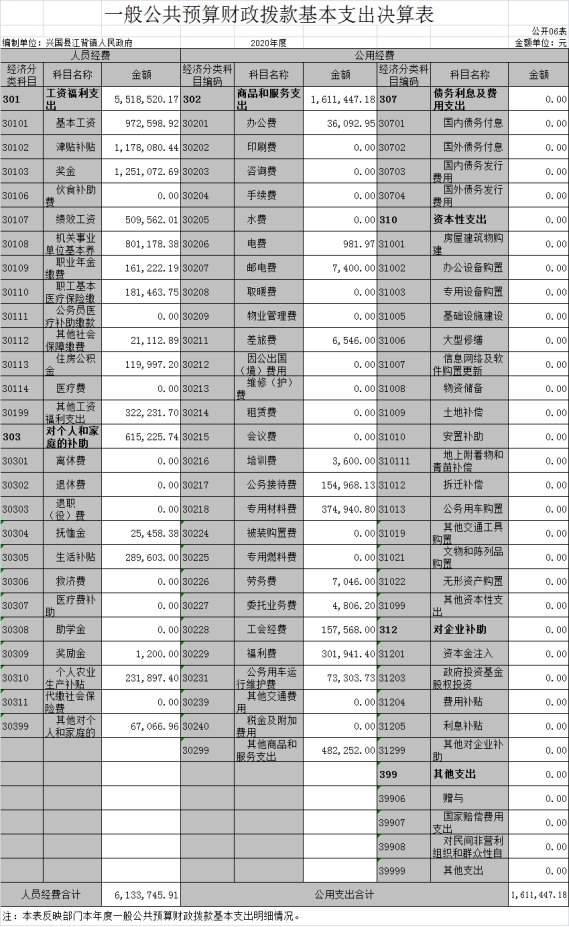 六、一般公共預(yù)算財(cái)政撥款基本支出決算表