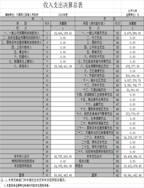 江背鎮(zhèn)人民政府2020年度部門決算