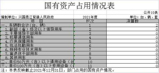 截止2021年12月31日,本部門(單位)國有資產占用情況見公開10表《國有資產占用情況表》。其中車輛中的其他用車主要是消防用車。