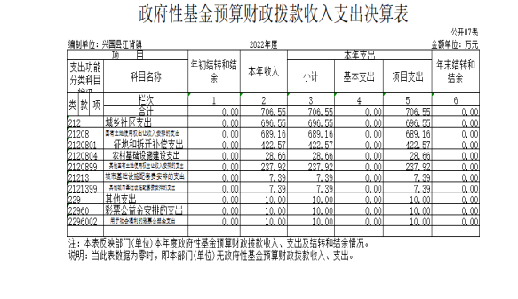 七、政府性基金預(yù)算財政撥款收入支出決算表