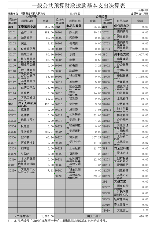 六、一般公共預(yù)算財政撥款基本支出決算表
