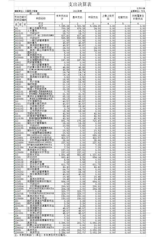 本部門2022年度支出總計7085.28萬元,其中本年支出合計7085.28萬元,較2021年增加1574.24萬元,增長28.5%,主要原因是:新增瑞興于等項(xiàng)目;年末結(jié)轉(zhuǎn)和結(jié)余0萬元,較2021年增加0萬元,增長0%,主要原因是:財政執(zhí)行新政策,不再結(jié)轉(zhuǎn)結(jié)余資金。