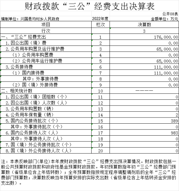 9.“三公”經費:指用財政撥款安排的因公出國(境)費、公務用車購置及運行維護費、公務接待費。其中,因公出國(境)費反映單位公務出國(境)的國際旅費、國外城市間交通費、住宿費、伙食費、培訓費、公雜費等支出;公務用車購置費反映單位公務用車購置支出(含車輛購置稅);公務用車運行維護費反映單位按規定保留的公務用車燃料費、維修費、過路過橋費、保險費、安全獎勵費用等支出;公務接待費反映單位按規定開支的各類公務接待(含外賓接待)支出。