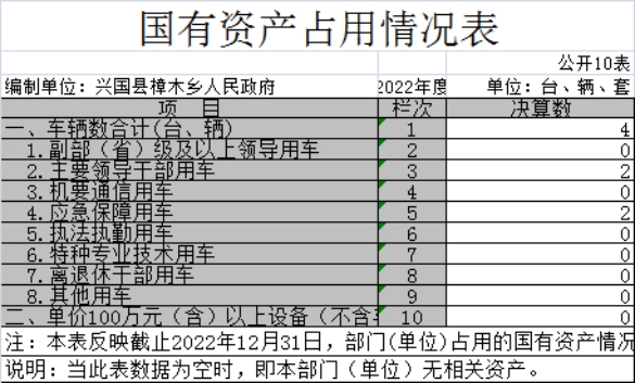 截止2022年12月31日,本部門國有資產占用情況見公開10表《國有資產占用情況表》。其中車輛中的其他用車主要是無。