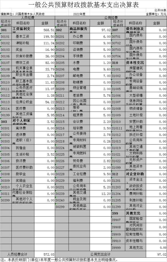 6.基本支出:指為保障機構正常運轉、完成日常工作任務而發生的人員經費和公用經費。其中:人員經費指政府收支分類經濟科目中的“工資福利支出”和“對個人和家庭的補助”;公用經費指政府收支分類經濟科目中除“工資福利支出”和“對個人和家庭的補助”外的其他支出。