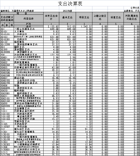 本部門2022年度支出總計2155.62萬元,其中本年支出合計2155.62萬元,較2021年增加189.25萬元,增長9.6%,主要原因是:該年度鄉村振興項目資金的調整;年末結轉和結余0.00萬元,較2021年減少0.00萬元,主要原因是:財政執行新政策,不再結轉結余資金。