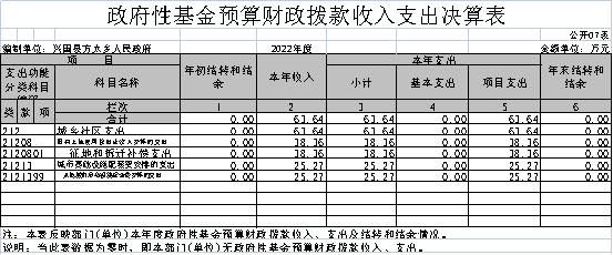 七、政府性基金預算財政撥款收入支出決算表
