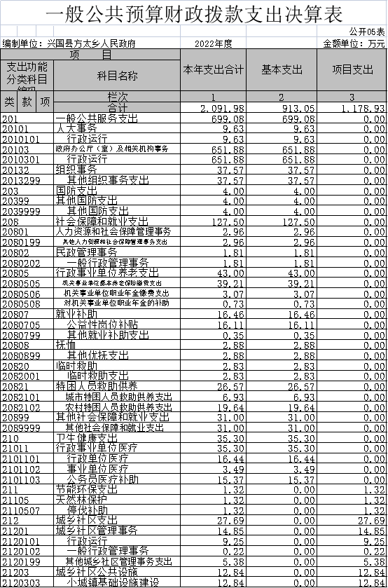 方太鄉人民政府2022年度部門決算