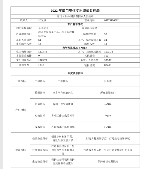 第三部分 興國縣茶園鄉人民政府2022年部門預算表