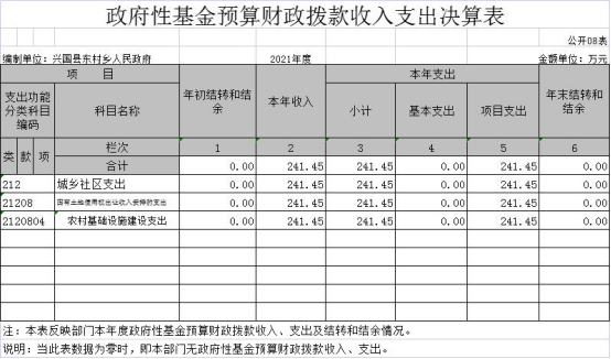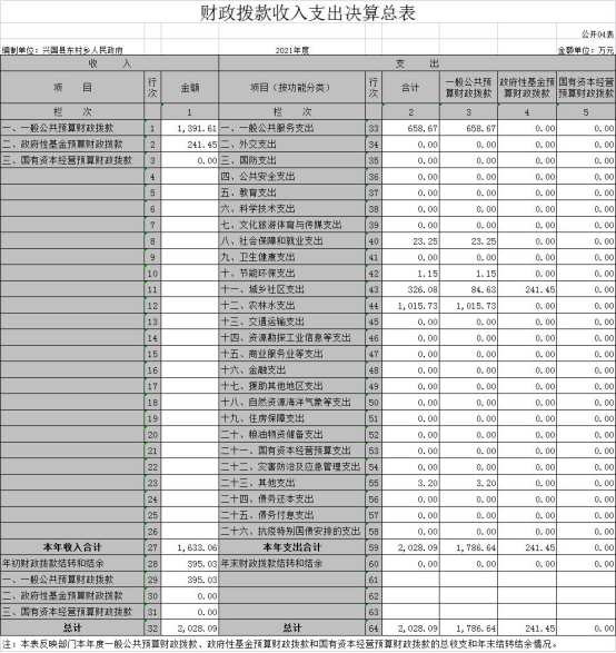 納入本套部門決算匯編范圍的單位共1個,包括:東村鄉人民政府。