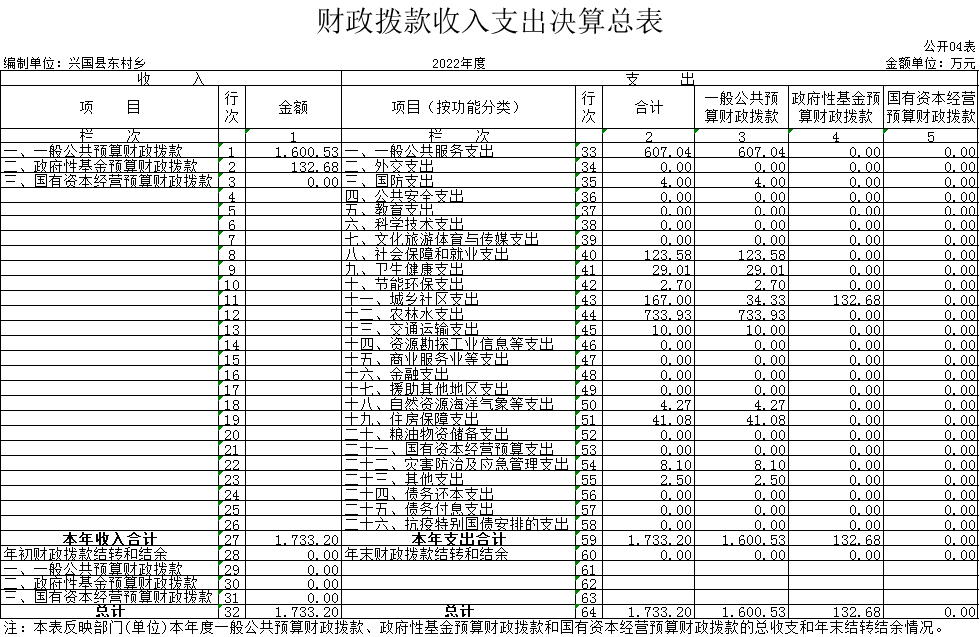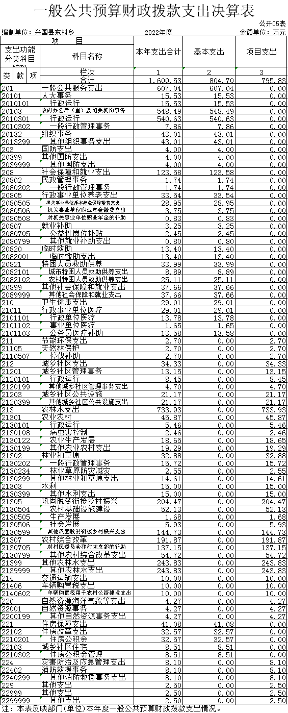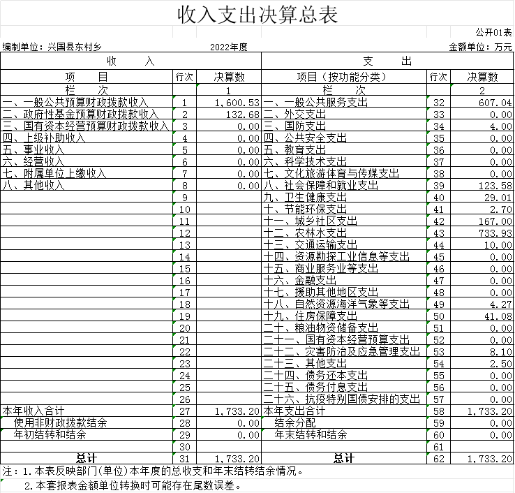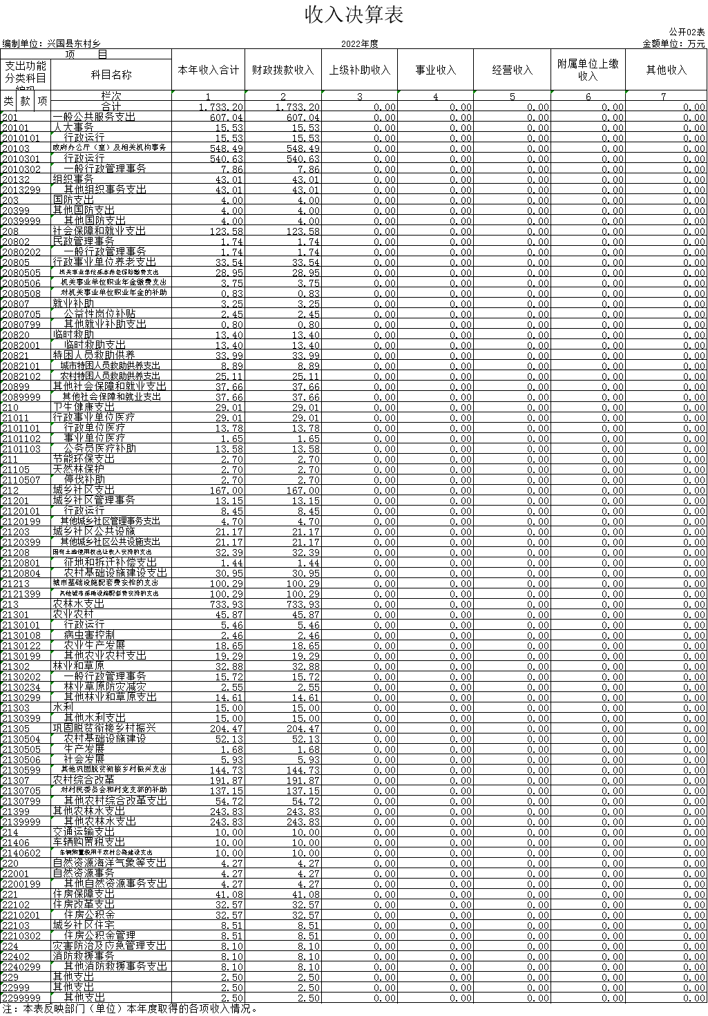 納入本套部門決算匯編范圍的單位共1個,包括:興國縣東村鄉人民政府。