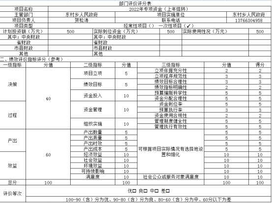 東村鄉人民政府2022年度部門整體支出績效自評報告