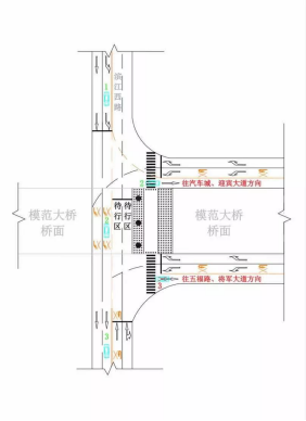 濱江西路瀲江衛生院往公安局方向允許往汽車城方向車輛左轉上模范大橋,禁止往五福路、將軍大道方向車輛左轉。