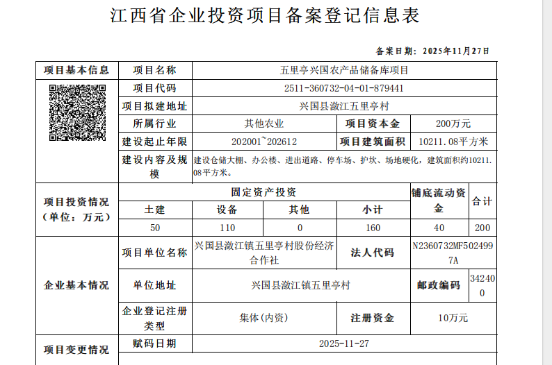 興行審投資字〔2025〕1049號五里亭興國農產品儲備庫項目備案通知書
