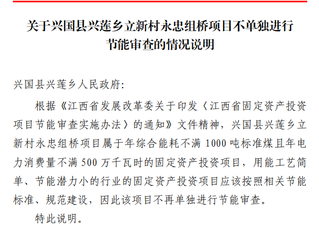 興行審投資字〔2025〕1000號關于興國縣興蓮鄉立新村永忠組橋項目不單獨進行節能審查的情況說明