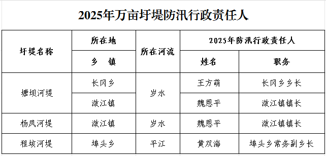【公告公示】2025年度防汛抗旱行政責任人公示