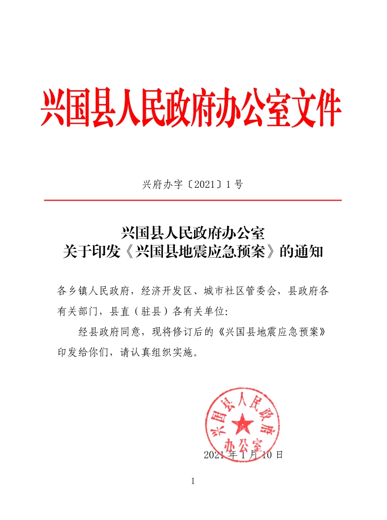 關于印發(fā)《興國縣地震應急預案》的通知