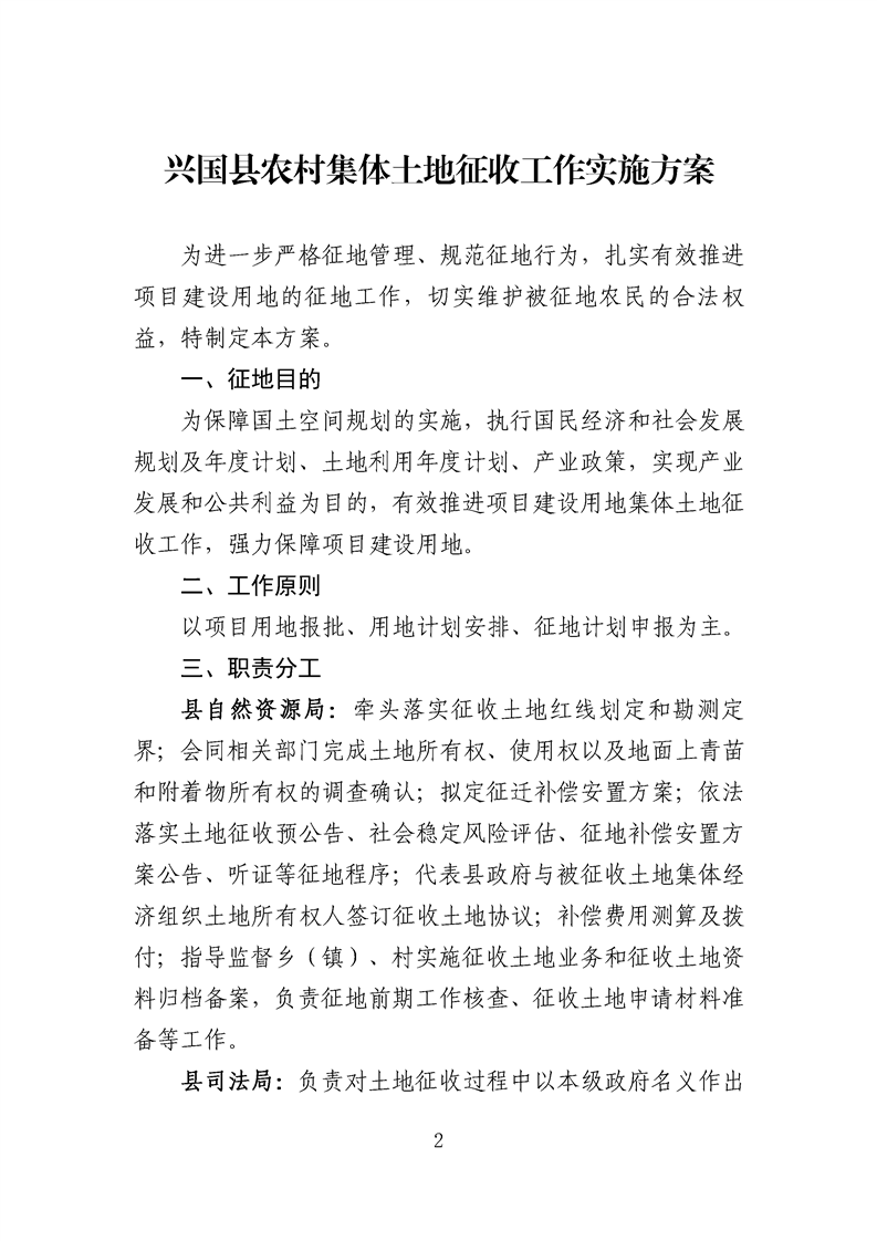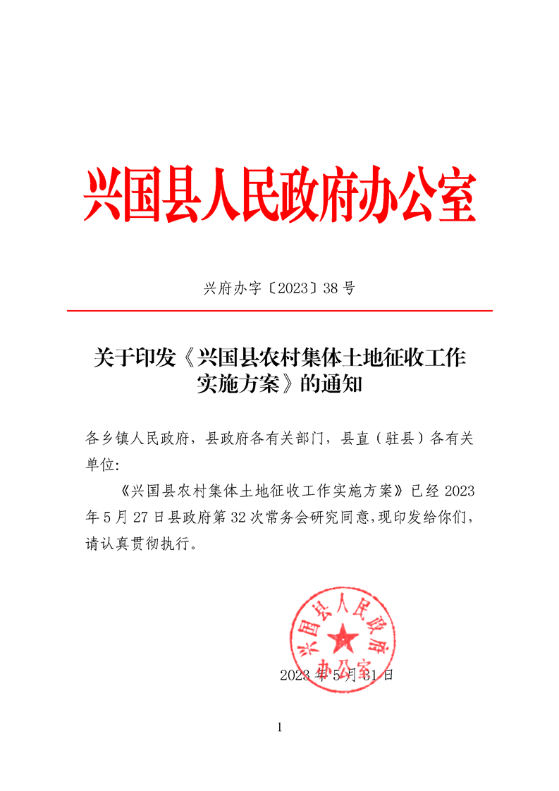 關于印發興國縣農村集體土地征收工作實施方案的通知