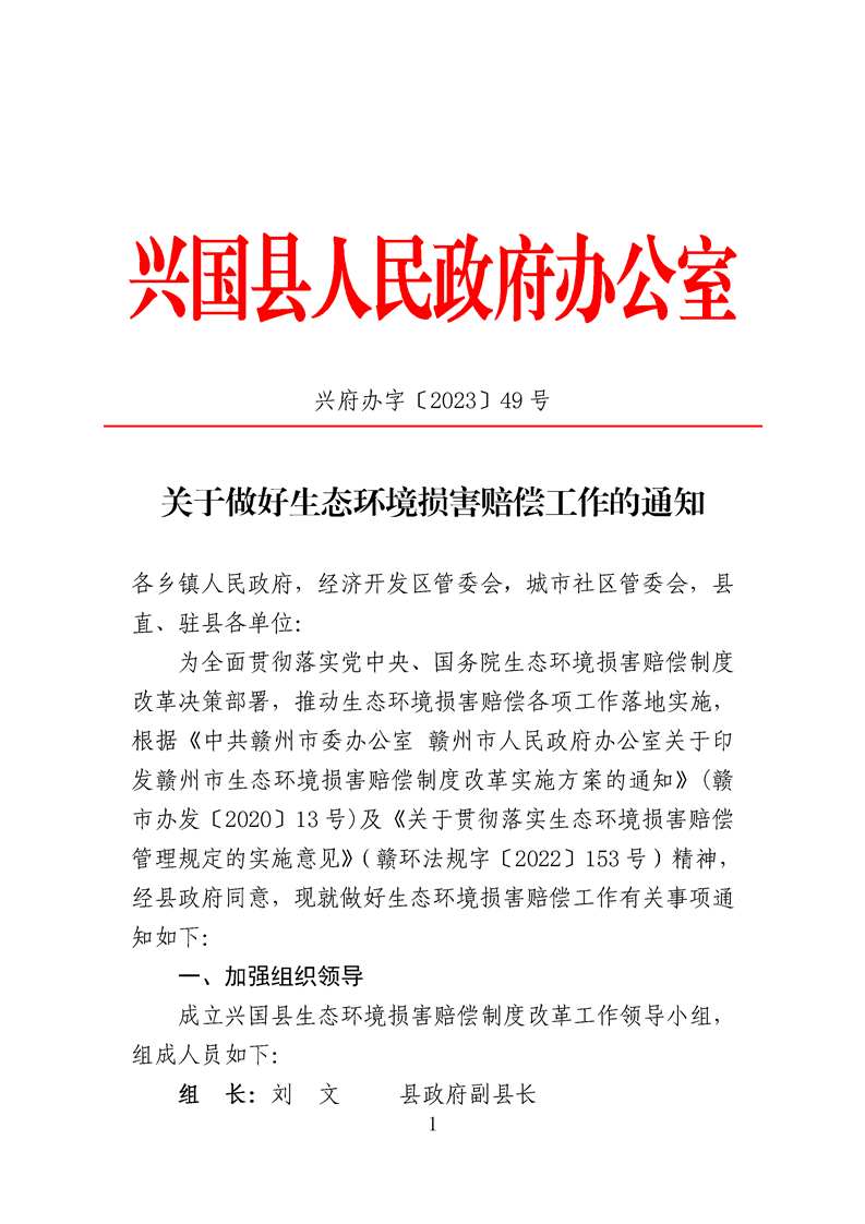 【有效】關(guān)于做好生態(tài)環(huán)境損害賠償工作的通知