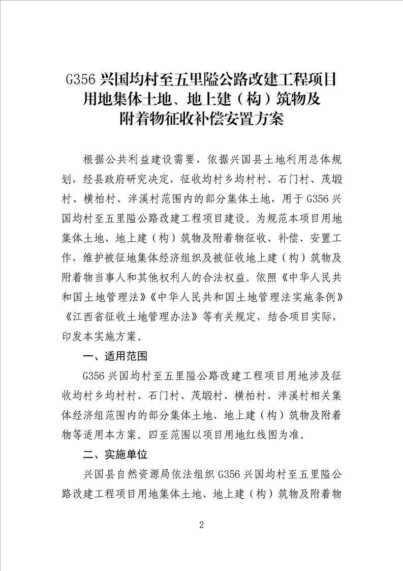 【有效】關(guān)于印發(fā)《G356湄西線興國(guó)均村至五里隘公路改建工程集體土地、地上建(構(gòu))筑物及附著物征收補(bǔ)償安置方案》的通知