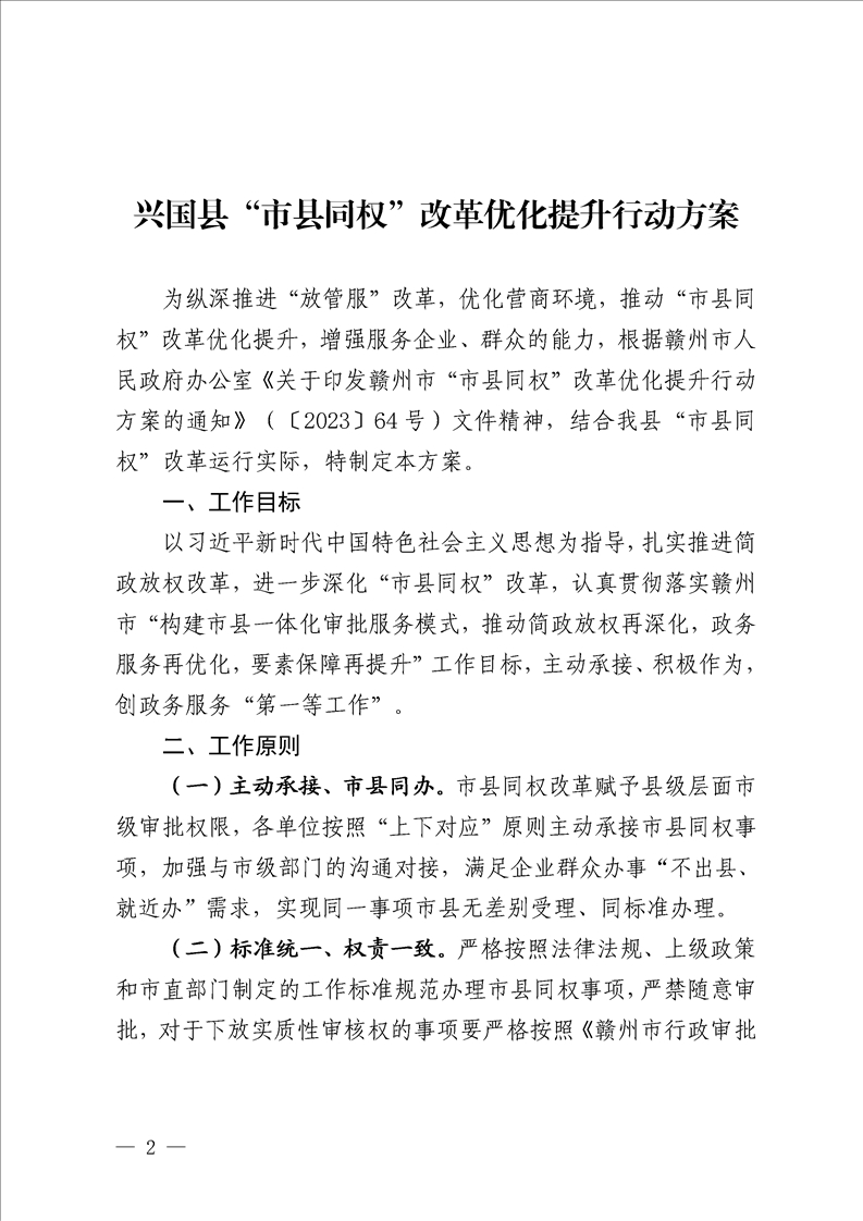【有效】關于印發《興國縣“市縣同權”改革優化提升行動方案》的通知