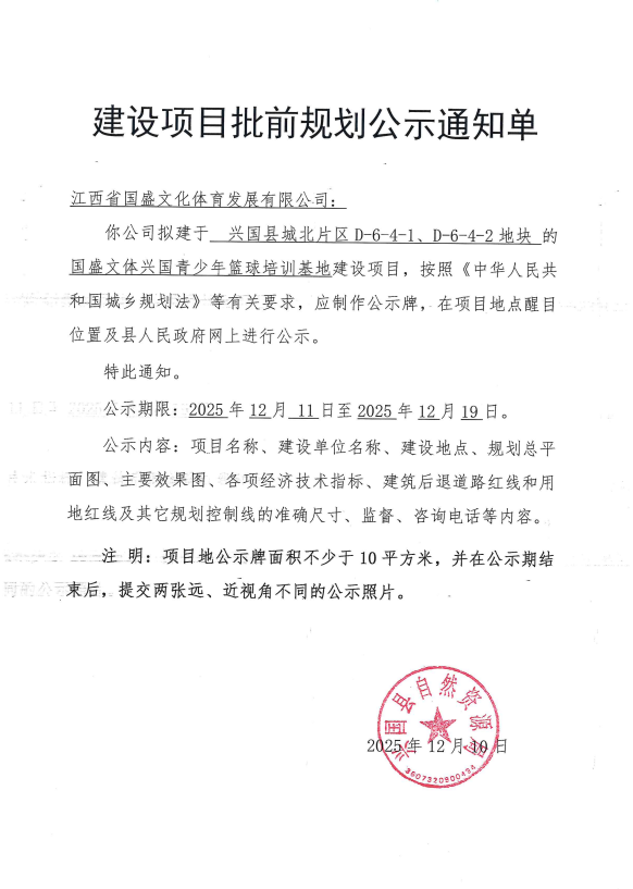 建設(shè)項目批前規(guī)劃公示通知單