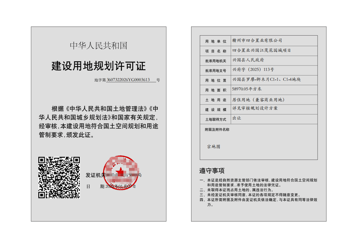 (四合置業興國江茂花園城項目)建設用地規劃許可批后公布