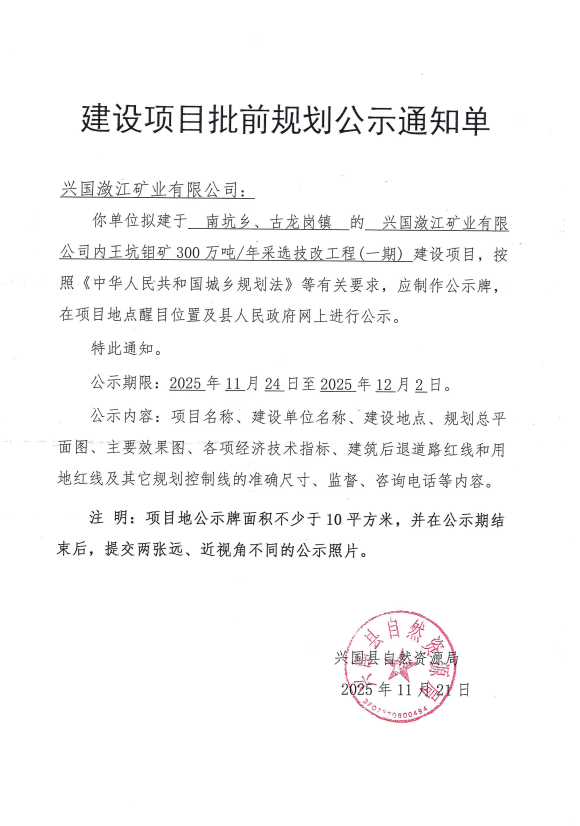 建設項目批前規(guī)劃公示通知單