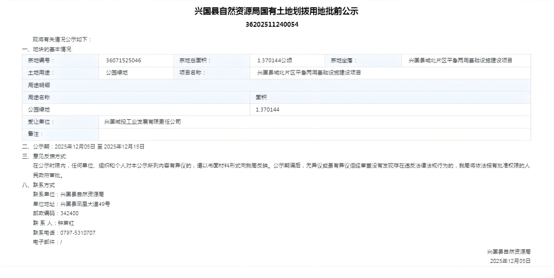 興國縣自然資源局國有土地劃撥用地批前公示