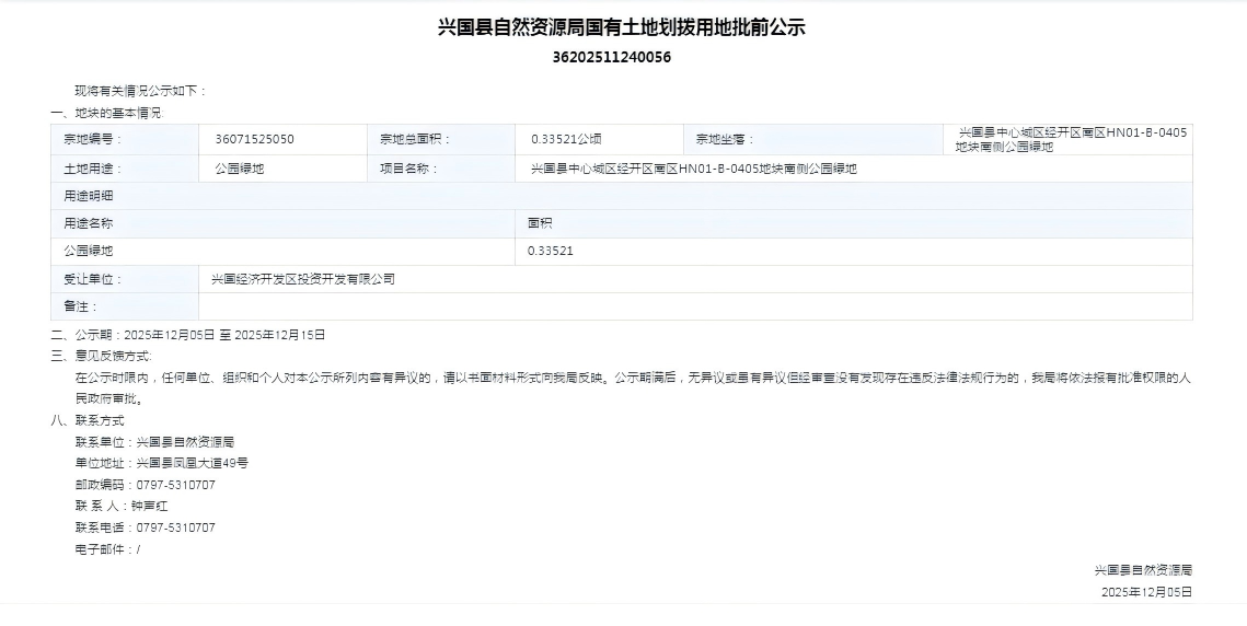 江西省自然資源局國有土地劃撥用地批前公示