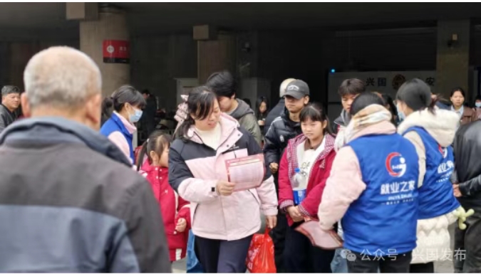 新春將至,歸途亦是新程。為搶抓春節前后勞動者流動的“黃金期”,近日,興國縣就業中心將服務陣地前移至火車站,開展“送崗位、送政策、送服務”地推宣傳活動,變“被動等申請”為“主動送上門”,讓廣大返鄉人員、高校畢業生及各類重點群體在踏出站口的第一時間就能感受到家鄉的就業熱度與服務溫度。