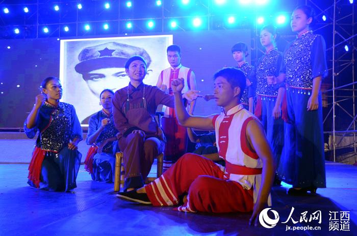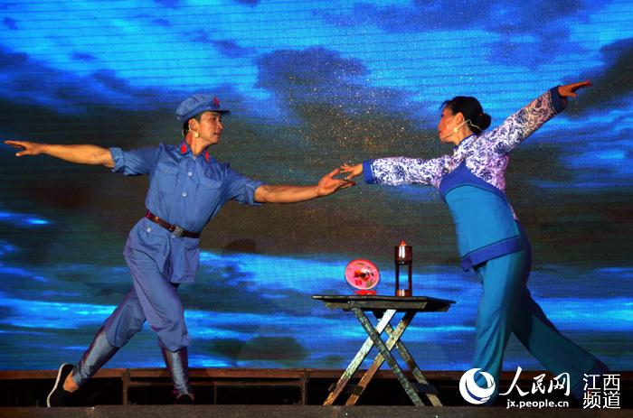 人民網興國10月30日電(時雨)30日晚,興國山歌劇《老鏡子》在該縣將軍園上演,這幕山歌劇是根據該縣一段真實的故事改編而來,與常見的革命歷史題材文藝作品不同,《老鏡子》別具匠心地選取了一個極富個人色彩的“小”題材,并精心挖掘其中感人至深的紅色浪漫與情懷。